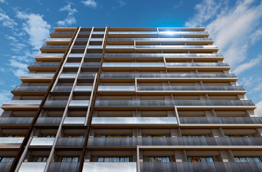 <プレミスト立川>は、「モダニズム」をデザインコンセプトに掲げている。外観は、複雑に組み合わさったタテと横のラインが特徴的で、さらに色調の異なる複数のガラス素材の採用によって、存在感のあるデザインとなっている。また共用部には、立川の歴史において街の発展のきっかけとなった、