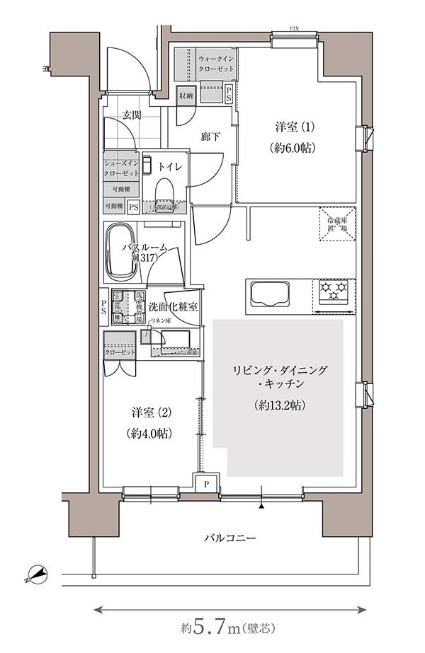 間取り 2LDK 専有面積 51.93m2~52.95m2