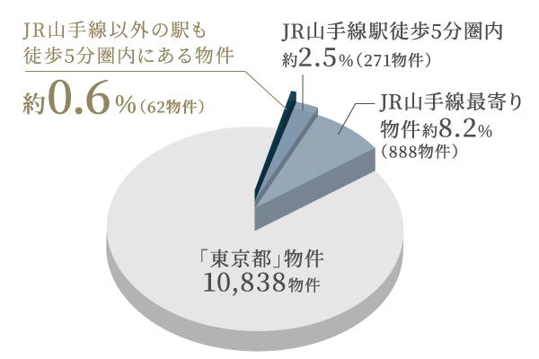 JR山手線以外の駅も徒歩5分圏内にある物件割合(※1)