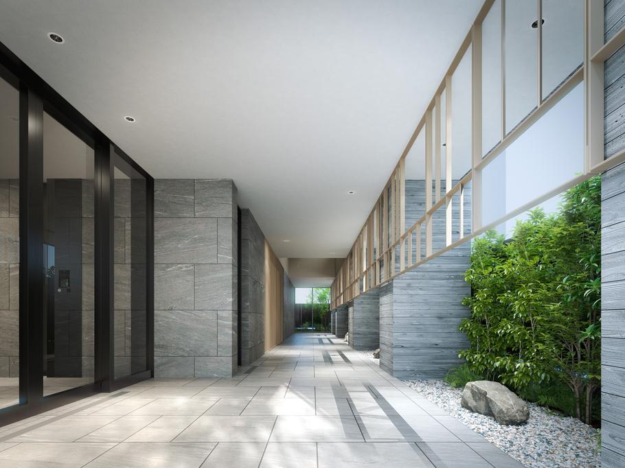 • <アトラス上野根岸>は、その立地の希少性や利便性だけでなく、街並みと調和するデザインも注目したいポイントです。「ROJINIWA ~呼吸する回廊~」をテーマに風除室やエントランスホール、裏庭などの空間を“ひとつの路地”として繋ぐことで、豊かな回廊空間を創出しています。