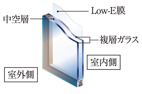 断熱・遮熱性能に優れたLow-E複層ガラスを採用※一部除く(概念図)