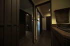 マンションとは思えない、深い和の趣あるSさんの家。子どもたちが独立し、夫婦ふたりのこれからを考えた住まいにと、間取りやデザインを一新しました。まず間取りは、部屋を減らし、広いLDKと寝室の1LDK+ウォークインクロゼットに。ゲストを迎えるおもてなしの空間として土間スペースを新たに設け、夫婦もゲストもゆったりと寛げます。また、バリアフリーも考慮。引戸を採用し、寝室から水廻りスペースに直接行ける動線にしました。そして、Sさんがずっと憧れていた“陰翳を感じる暮らし”を叶えるため、京都の“町家”を意識した縦格子の間仕切り壁や窓で光と影をデザイン。日本古来の美しい世界観を創り出した、こだわりの空間となりました。