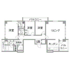 間取りを大きく変更するには少し制限のあった中古マンション。同社はもとの間取りを活かしながら、LDと洋室の間の壁をなくし、キッチンの出入口を広げるなどでLDKに開放感を創出。また、2つのクロゼットをつなげて、2WAYの回遊できる大型クロゼットにするなど、ちょっとした工夫で暮らし心地のよい間取りを提案しました。