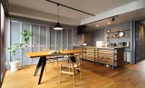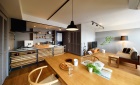 「間取りやデザインにこだわりたくて」と、中古マンションを購入し、ふたりの好みの空間にリフォームすることを選択したIさん夫婦。自然素材を用いたデザインが得意で、中古物件購入からサポートするLOHAS studioに相談し、住まいを創り上げていきました。まず間取りは、リビングの物入を撤去し開放感と一体感のあるLDKへと変更。また、木目の表情豊かな床や無垢材のキッチン・建具などぬくもりある木の素材をたっぷりと採り入れながら、アイアンの黒や壁のグレーなど、クールな色彩を巧みに組み合わせて空間をデザイン。共働きで忙しい夫婦がゆったりと落ち着いてくつろげる、洗練された大人の住まいを叶えました。
