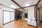 叔父様から引き継いだ築18年の戸建て住宅を「自分たちが住みたい家にしたい」と考え、リフォームを計画されたMさん。住友林業ホームテックは2DKだった1階を、和室ひと部屋を残し、DK、和室、廊下を一体化。広々とした明るく開放的な空間を実現しました。家事動線にもこだわり、洗濯機のある洗面室からキッチンを通って濡縁に続く動線を採用。無駄な動きを減らし、家事がラクになるように配慮しました。少なかった収納も要所要所に新設することで、すっきり片付く空間に。内装は、天井の梁をはじめ無垢フローリング、ウッドタイル、格子の目隠しなどで演出し、木の質感を活かした仕上げになりました。