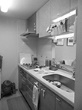 以前は対面式だったキッチンを壁付けに。白を基調にした設備を採用することで、LDと統一感をもたせている。背面には、手持ちの食器棚がきっちり収まり、収納を充実させるためにパントリーを新たに設置した