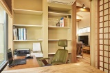 仕切られていたリビングとDKをひとつにまとめ、廊下を取り込んで広いLDKを実現。さらに吹き抜けにすることで、開放感溢れる空間としました。対面式にしたキッチン横には洗面や浴室などの水まわりを設け、動線を整理することで使い勝手も追求。来客が多いため、玄関横に靴を脱がずに利用できる書斎兼応接室も設置しました。