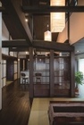玄関内部は船底天井に採用した竹を網代状にして、旧来の大黒柱を上がり框に、書斎兼応接室には慣れ親しんだ建具を再利用しました。リビングも梁を現し、ダイナミックな吹き抜け空間に。床に無垢の檜を採用し、新旧の部材が美しく調和するように配慮。木質感溢れる意匠を楽しめる空間に仕上げています。