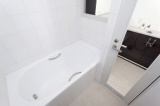 背の高さに合わせ、バスルームには1.6mサイズの浴槽を希望されていたMさん。しかし、浴室・洗面室は構造壁で囲まれて、入り口が広げられず、大きなユニットバスを運び込むことができませんでした。