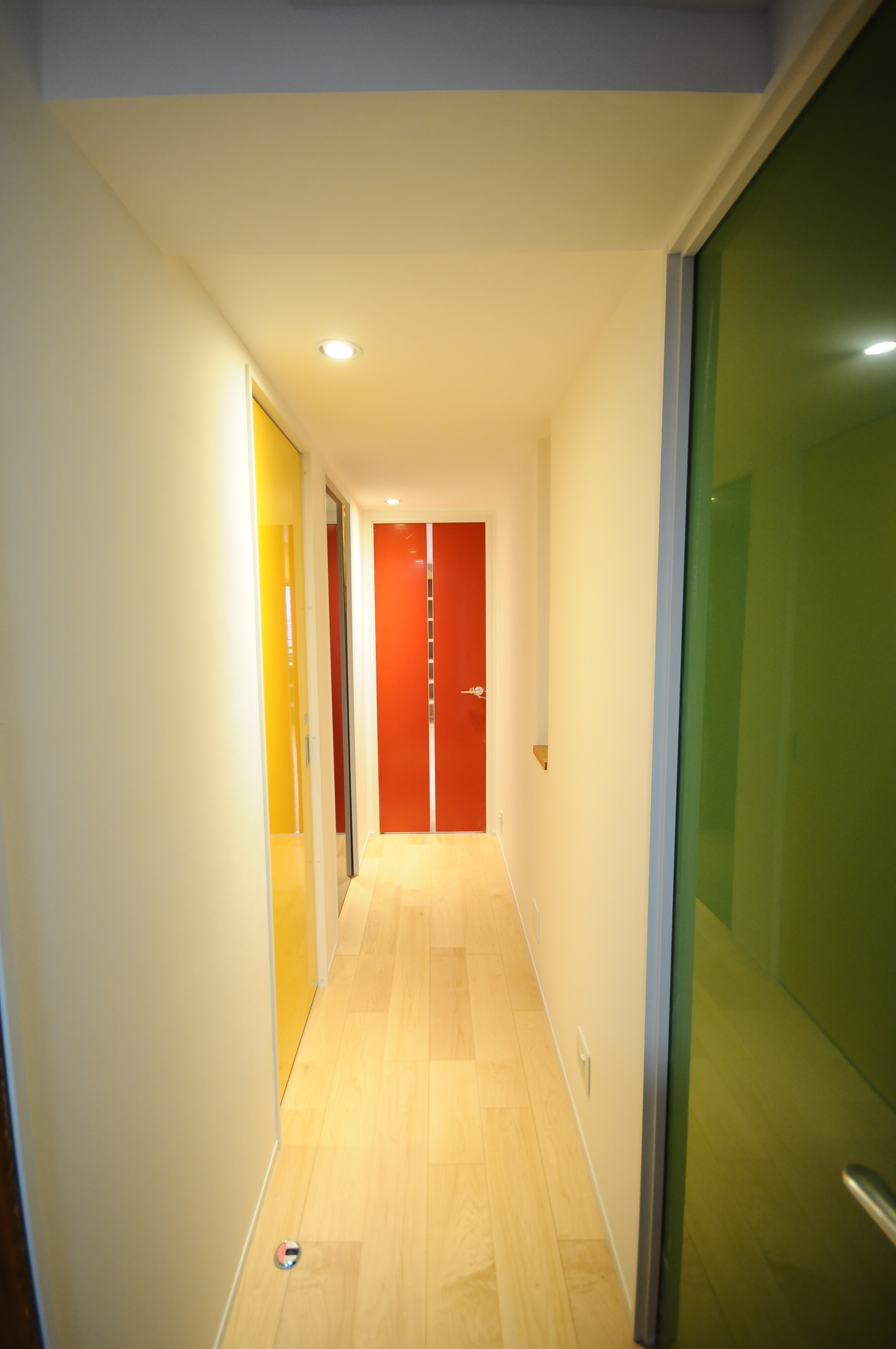 夫人の出産を機に、ご実家が所有するマンションのペントハウスに同居することを決めたIさん。5階部分はもともと親世帯の住まいでしたが、今回は6階部分を子世帯の住まいにするため、階段部分からリノベして完全分離の2世帯を計画。6階にはミニキッチンとトイレがありましたが、水回りをフルスペックに変更しています。病院勤務をされているIさんご夫婦には、「病院が真っ白なので、自分たちの住まいには好きな色や好きな素材を使いたい。」という思いがありました。アクセントウォールを取り入れたり、LDKにはカラフルな大型シェルフを造作したりと、Iさんらしいカラフルで心がはずむ住まいに仕上がりました。