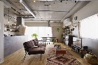 比較的リノベーションしやすい物件でしたので、3LDKから1LDKへと間取りを大きく変更しています。和室をリビングに取り込んで広々としたLDKに。吊り戸棚で閉鎖感のあったキッチンは移動して対面式にしています。天井を抜いて現れたダクトや配線は空間イメージに合わせて化粧を施し、違和感のない空間に仕上げました。角部屋で窓が多いことからインナーサッシをご提案して断熱性能をアップ。遮音性も高まり静かに暮らせます。築5年でキッチン、浴室などは既存が利用できたので、その分のコストをほかに回して理想の空間を実現しました。