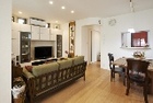 南面の開口部が広すぎて、耐震性に不安を抱いていたTさん。耐震診断を実施し、大胆な間取り変更を伴う耐震リフォームを行うことに。同社は耐震診断をしっかり行い、入念な補強計画を立てながら、階段位置の変更を検討。これにより、キッチンをコンパクトにまとめることに成功し、のんびり寛げる広いリビングを実現させた。また、デザインではニッチや曲線型のキッチンカウンター、上部を窓まで延ばしたリビングボードなど細部に気を配った提案を行い、全体のバランスがきれいに見えるように工夫。外にはフルオープンのサッシでつながるデッキスペースも新設し、夫婦二人が暮らしを楽しめる住まいが実現した。