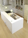 お洒落なカフェのような雰囲気が心地よいダイニング・キッチン。モダンなタイル仕上げのアイランドキッチンが、部屋全体のシンボル的な存在に