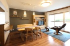 構造上抜けない壁にアクセントタイルを貼り、空間のデザインとして存在感をもたせたことで、洗練された雰囲気に仕上がったダイニングスペース