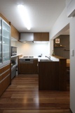 子供の頃から自分だけのスペースのある新しい住まいがあこがれだったというSさま。長年夢に描いてきた、自分の城ともいえる寝室、畳コーナーのある広々LD、対面式のL型キッチンを備えた家に間取りを再考。「上質・質素・和」テーマのお住まいが完成しました。