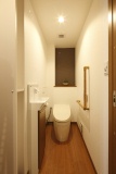 傷みが気になっていたトイレも一新。タンクレスを採用し、洗面室との間の壁面に収納スペースも造作。スッキリとして使いやすくなった。「人感センサーをつけたので、夜の手洗いに重宝しています」(Sさま)