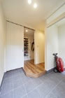 物が多く、靴や洋服があふれていたので、できるだけ多くの収納を希望したSさん。同社は寝室に広いWICを設け、玄関にも靴をたっぷり収納できるSICを計画。「釣りを趣味にしていることを伝えると、担当者は勝手口の隣に濡れたものもしまえるように既存の土間を活かした収納を提案してくれました」とSさん。