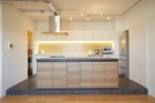 以前はキッチンが壁で覆われ独立し、隣に小さな部屋が接する使いにくい細切れの間取り。同社は不要な小部屋を撤去し、キッチンを空間の中心に移動。配管のために床を1段上げる必要がありましたが、その制約を逆に活かしてステージのように演出。アイランドキッチンを採用し、キッチンが主役の空間に一新しました。