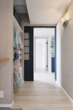 LDKは手前にあった和室部分を取り込んで広々とした空間に生まれ変わった。さらに、押し入れ部分の壁を抜いて、奥の寝室とつなげ、通路にはウォークスルータイプのクロゼットを新設。クロゼットからは洗面コーナーにもつながりキッチン側にも抜けられる。「家事動線が整ったことで、暮らしやすさが大きく向上しました」と満足そうに話してくれた