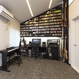 過去3回の経験からリフォームの難しさを感じていたKさん。4回目となる今回は既存の和室と洋室を取り払い、ロフト付きの趣味の空間をつくりたいと希望した。Kさんが依頼したのは、理想のロフトをつくれる技術力やノウハウ、要望が伝わりやすい自社施工、そして高い提案力を併せもつ土屋ホームトピアだった。同社はロフトの床板の厚さから調整を行い、Kさんも納得の天井高を確保。また、両サイドには屋根勾配に沿った収納棚を造作し、さらに防音設備をほどこして、Kさんが周りを気にせずに楽器演奏や音楽鑑賞を楽しめる空間を実現した。「この会社なら安心して任せられると確信していました」とKさんは満足そうに話してくれた。