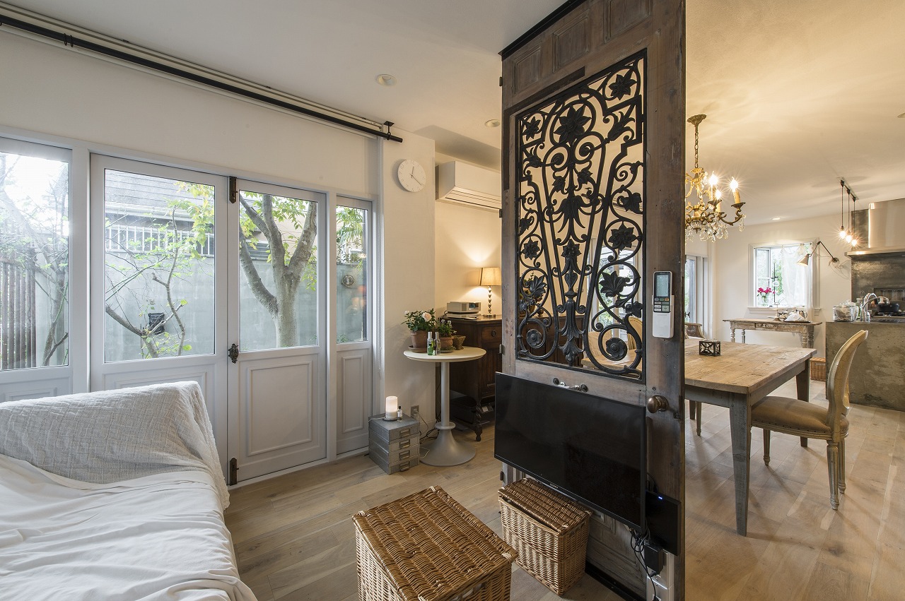 アンティークがお好きなご夫婦は、狭いリビングと庭にご不満をお持ちでしたが、一階の和室を潰して、広いリビングダイニングをつくりました。以前から買い溜めていたお気に入りのアンティークのリビングドア、室内ドア、アイアン、家具、小物などを使い、古めかしさと、スタイリッシュさを併せ持つ、癒しの空間をつくりました。既存の庭は伸び放題の状態でしたから、一部植栽を間引きしスッキリさせました。そして、広いデッキをつくり、室内、デッキ、ガーデンと一体感を持たせるようにしました。施工会社:株式会社ホームランド