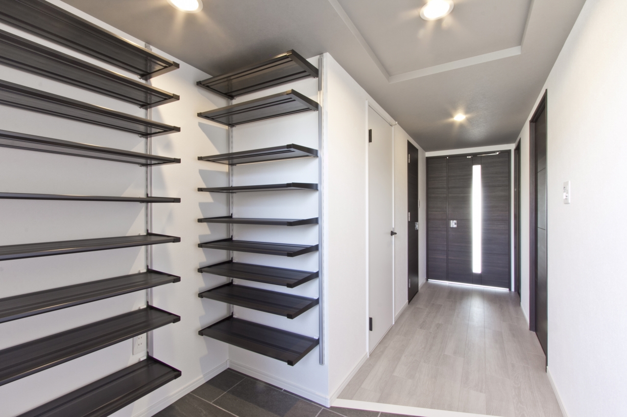 玄関入ってすぐにはファミリークローゼット。洗濯した物をまとめてこちらに収納することができ、家事動線もラクラク。様々な荷物を収納できるので、リビングや個室の生活スペースはいつもすっきりと過ごすことができます。