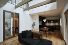 1階にも2階にもリビングを設けて、それぞれの世帯が過ごせるように計画。建物のほぼ中央にあった2階へとつながる階段は鉄骨階段につくり直し、フォルムも、横から眺めた際にシャープな印象になるように仕上げた