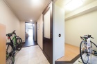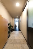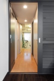 以前は壁面に、床から天井までの収納がずらりと並んでいて、通路を狭くすると同時に、かなりの圧迫感を与えていた。そこに収納したいものも特になかったIさんは、思い切ってすべて撤去。土間の部分をできるだけ大きくとって、自転車なども並べられるようにした。また、右手には洋室につながる引き戸を設け、土間でつなげて直接行き来できるようにした