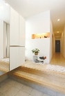 階段の間仕切りをなくしてオープンにし、和室は全開口ができる引き戸を取り入れた洋室へと再生。全体に一体感が感じられて、明るく開放感も楽しめる空間へと生まれ変わった。左手の取り外せない耐力壁にはニッチをデザインし、小物を飾る場所として上手く活用させた