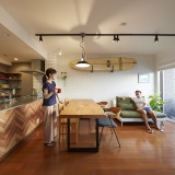 メーカー品と造作を組み合わせたキッチンや、棚やアクセサリーをお好みの家具屋さんで購入してご支給いただいたり、ボードラックを使ってサーフボードを飾ったり、とこだわり抜いたリフォームとなりました。特に内装選びは時間を忘れて夢中になって打ち合わせをさせていただきました。工事中も定期的に現場で打ち合わせをしたり、色々とご協力いただき感謝しています。「思い描いた理想の空間」とお褒めの言葉をいただくことができました。