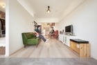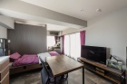 ワンルームのように使いやすい、間仕切りのないオープンな空間へ一新。家具でゆるやかに仕切ることで、開放感はそのままでゾーニングを意識。ダイニングやベッドからも、窓に映る公園の緑を楽しめるようになった