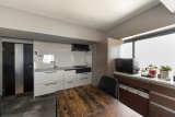 「窓際にあったキッチンは、柱がある分、デッドスペースができていました」とHさん。そこで、キッチンは壁側に移動。スペースを活かして収納カウンターを設置。ゆとりある空間へ生まれ変わった