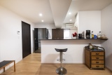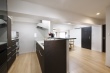 リビング・ダイニングを広く使えるように、キッチンのレイアウトを変更。作業スペースをコンパクトにすることで、動きやすさを重視した設計に。左側の扉は夫人の個室へとつながる、スムーズな動線を新たに設けた