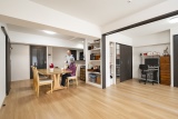 まず、間取りと古くなった水まわり設備を一新するとともに、断熱工事を行うことで住環境の快適さを高めました。また、廊下を通って行き来していた北側の部屋は、リビングから直接つながる間取りに変えて、スムーズな動線を実現。同時に、部屋の扉を開き戸から引き戸に変更することで、扉の開け閉めがしやすくなり、住まい全体の風通しが良好に。湿気対策にも役立っています。また、各部屋にあった段差も解消し、安心のバリアフリー設計となりました。「床がフラットでつながっているので、掃除がしやすいのも嬉しいですね(Tさん)」