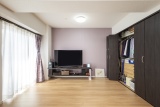 元は洋室だったスペースをリビングに取り込み、ゆとりある広さを実現。壁には掃除機や季節の衣服をしまえるリビング収納を新設し、広くなった部屋を広いままキープできる