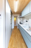 築20年のマンションは設備を一新すると共に間取りも変更。猫との暮らしを想定し、キッチンは独立型を選択。ペット用トイレの設置や、キャットウォークの設置に備えた補強工事、猫がスムーズに行き来できる動線も実現しています。