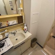 古くなった洗面化粧台は、インテリアに合わせてナチュラルデザインを選択。水まわりをつなぐ動線上には、タオルや洗剤を収納する棚を新設。床下の給排水管も取り替え、安心感のある快適な暮らしを実現した