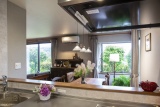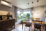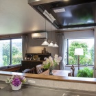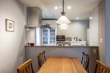 閉鎖的なキッチンにお悩みであったため、吊戸棚やコンロ前の壁を撤去し、リビング・ダイニングと一体感のある開放的な空間に改装。コンロ前の壁がなくなることで匂いや汚れを心配されていたが、換気扇の性能が向上していることもあり、問題なし。庭への視界が抜け、とても居心地のよい空間になり、満足されている。