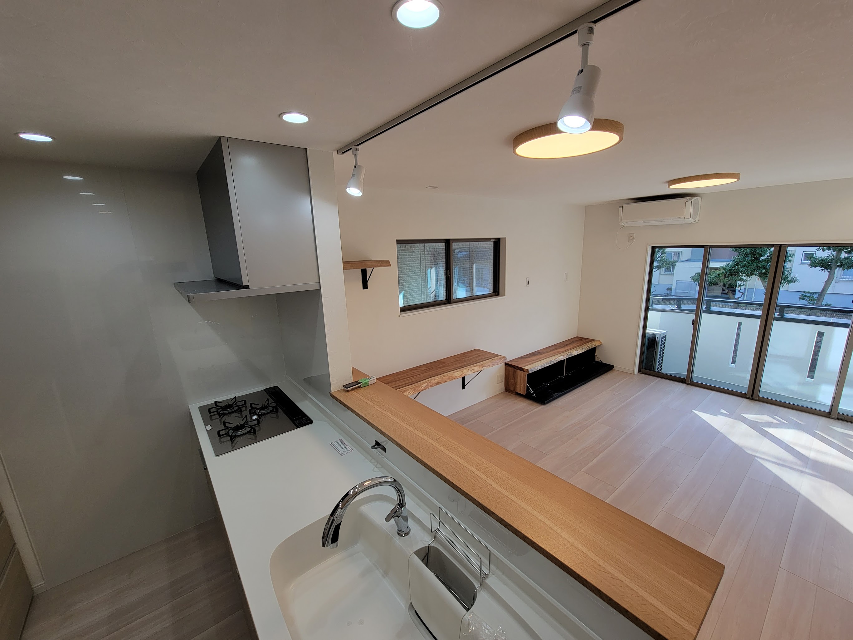 3階建ての建物で、2階にキッチンとLDKを配置することで、道路に面した立地でもプライバシーを守りつつ開放的な空間を実現しました。2階にLDKを持ってくることで、外からの視線を遮り、落ち着いた生活空間を提供。家族がくつろげるプライベート感を大切にしながら、明るく風通しの良い居住空間が確保されています。
