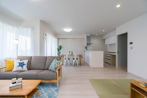 築16年のマンションにお住まいのMさんご夫婦。お仕事のリタイアを機に、「最上階にある見晴らしを活かして、LDKをもっと快適な場所にしたい」と、思い切ってリフォームを決めました。まず、壁付だったキッチンを対面式に変えて、視線を遮っていた吊戸棚も撤去。素晴らしい景色を楽しめるオープンキッチンが誕生。「料理をしながら、遊びに来た孫に目が届くので安心です」。また、リビング隣の和室は、色鮮やかな壁紙や琉球畳、襖を障子に変えるなど、モダンイメージに、「すっかり寛げる場所になりました」。内装も一新し、明るく広々と生まれ変わったLDKに、「窓に映る景色を楽しみながら、ゆったりリラックスできるLDKに大満足です」