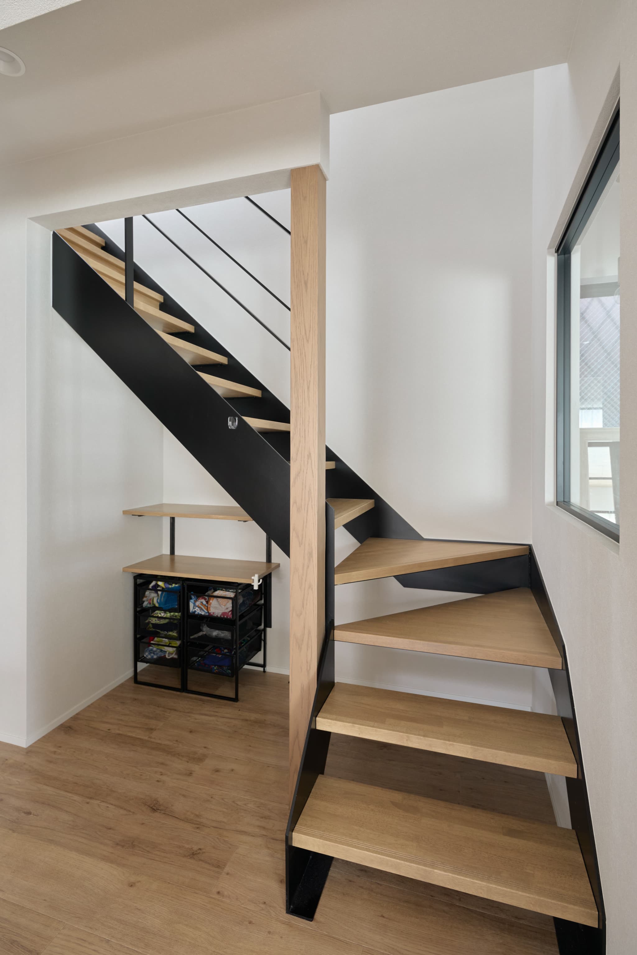 長年住み慣れた自宅を、広々としたリビングダイニングで家族がリラックスできる空間に。白と木目をバランスよく取り入れたナチュラルで優しい雰囲気に仕上がりました。シンプルなインテリアを基調としつつ、リビング内にアイアンの階段を取り込むことで「魅せる」設計を施しています。