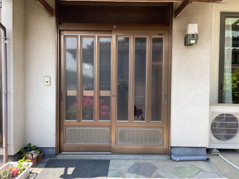 子供が遊んでいたボールが当たって割れた玄関のガラスを交換させて頂きました
