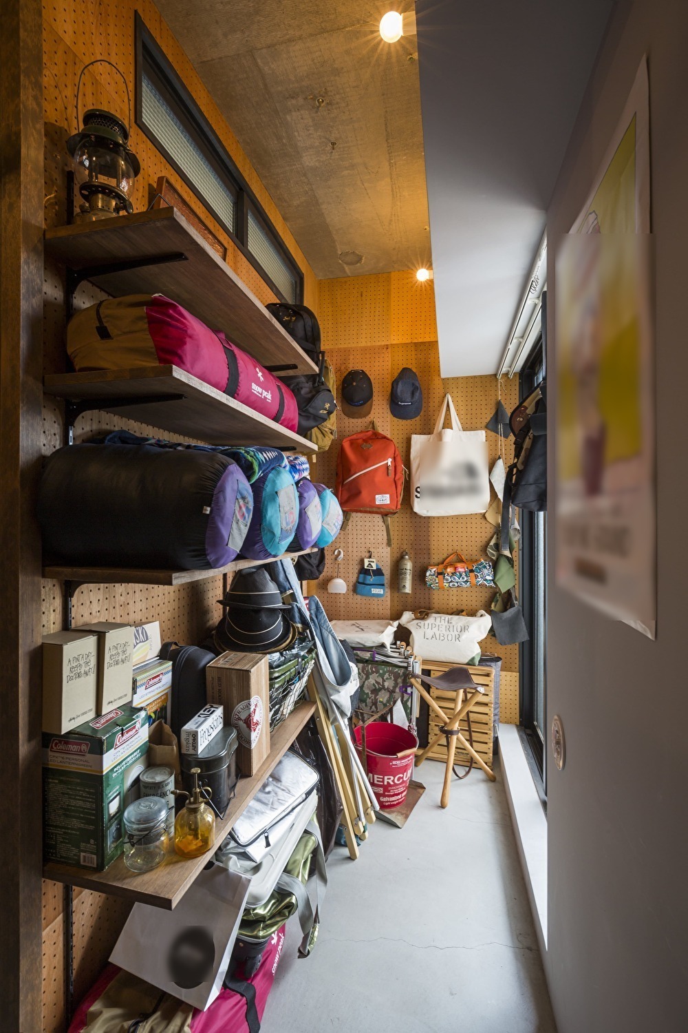 アウトドアが趣味のご夫婦とお子様の3人で暮らすお住まい。古木のタイル壁をはじめ、アンティークランプの照明や無垢材フローリング、山小屋を思わせる壁など、山や海を感じさせる要素がふんだんに取り入れられています。