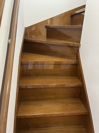 居室及び廊下・階段のフローリングを下地処理後、専用塗料で塗装しました。床面も保護して、ツヤツヤ見た目もきれいな仕上りです。