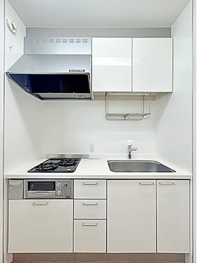 | キッチン | ガスコンロ対応、システムキッチン、2口コンロ、都市ガス |