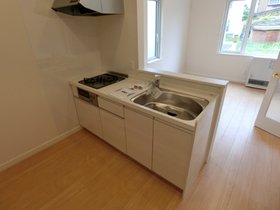 | キッチン | ガスコンロ対応、システムキッチン、2口コンロ、対面式キッチン、グリル付、プロパンガス |