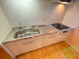 | キッチン | ガスコンロ対応、システムキッチン、2口コンロ、都市ガス |