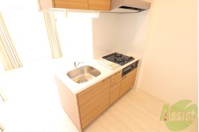 | キッチン | ガスコンロ対応、システムキッチン、2口コンロ、対面式キッチン、都市ガス |