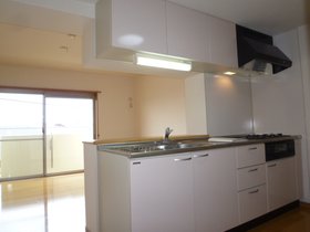 | キッチン | ガスコンロ対応、システムキッチン、3口以上コンロ、対面式キッチン、プロパンガス |