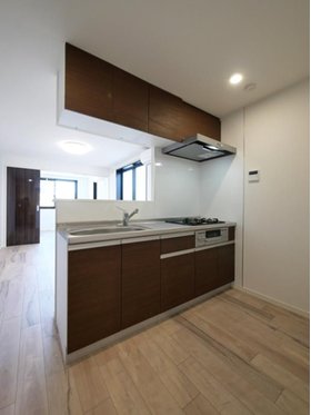 | キッチン | ガスコンロ対応、システムキッチン、3口以上コンロ、対面式キッチン、グリル付、都市ガス |